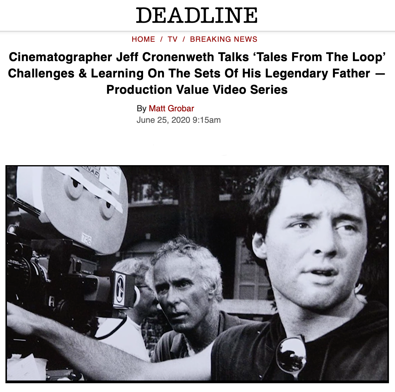 The latest installment in Deadline's Production Value video series features DP Jeff Cronenweth, who discusses overcoming huge challenges while shooting Tales From The Loop, as well as his early experiences on various sets with his father, the celebrated cinematographer Jordan Cronenweth. Check out the full interview here.